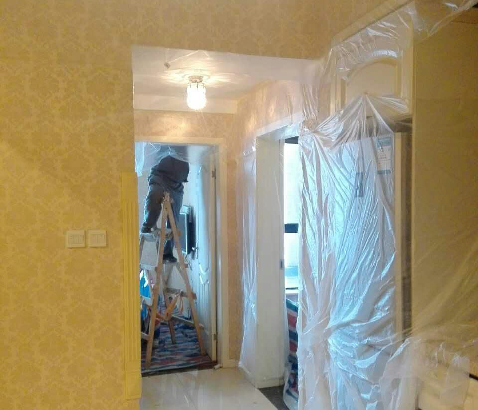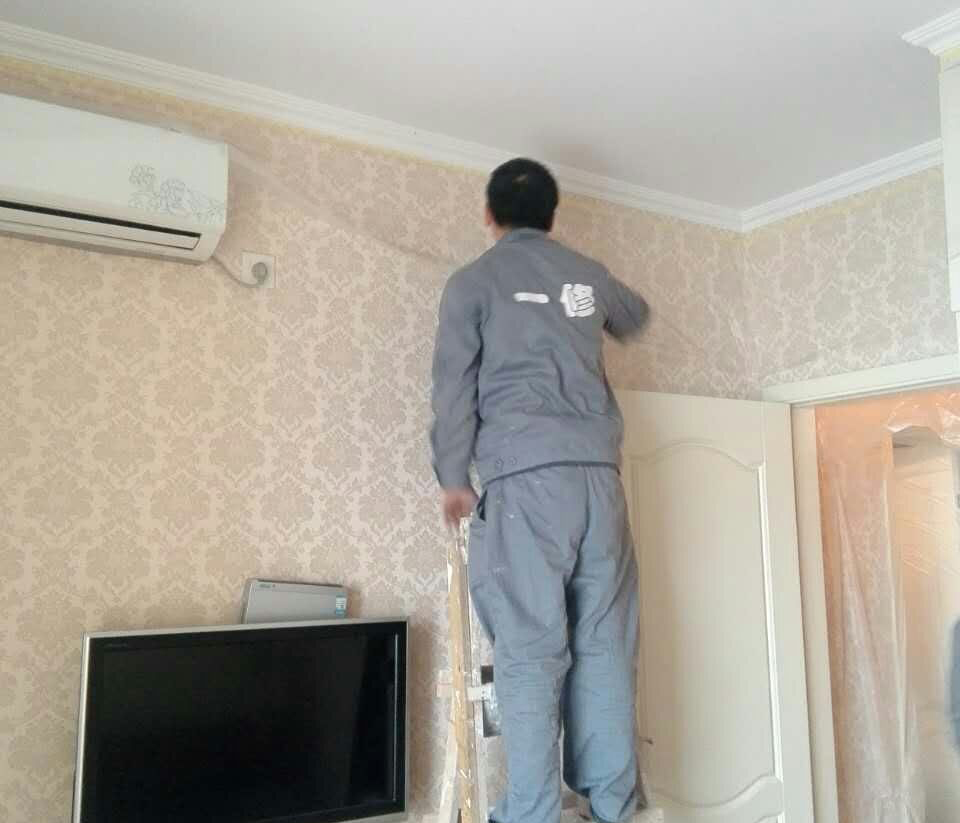 墻紙鋪貼項目內(nèi)容:1.貼墻紙:75平米拼花。2.乳膠漆:20平米。3.修補墻面:局部修補局部刷漆。4.陽臺頂面鏟除新做乳膠漆。5.裝踢腳線,拆踢腳線,掛裝飾品,6.成品保護。